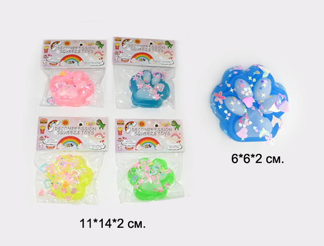 Антистресс арт. 805300/80821 Лапка мальтоза с конфетти в пак. (16 шт.) шоубокс=