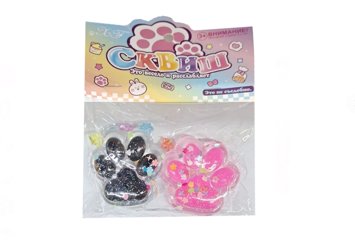 Антистресс арт. JJ273-209 Лапка прозр конфетти,бусины,блестки, набор 2 шт. мальтоза (20 шт.) в пак.