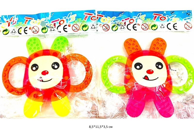 Погремушка арт. 8046 "Мордашка" цвета микс с прорезывателем в пак._