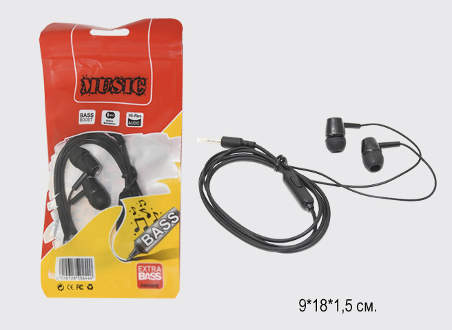 Наушники арт. 506444-2 MUSIC BASS проводные черные в пак.