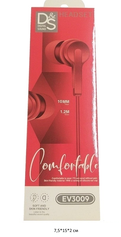 Наушники арт. EV3009 Проводные красные в кор.