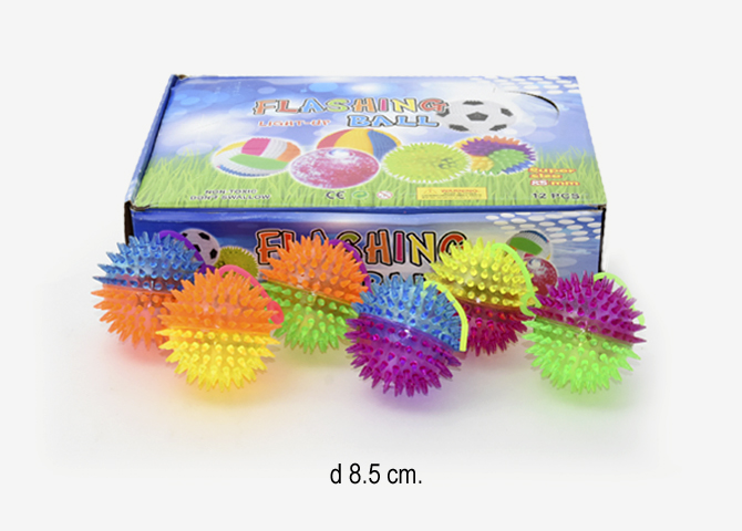 Мяч ежик арт. DYT-20 Звук свет прозрачн. двухцветн. на рез. цвета микс большой (12 шт.) в кор.•