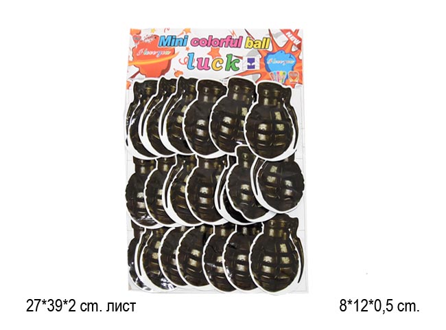 Бомбочки арт. 227 "Гранаты черные" лимонки 20 шт. на листе=+