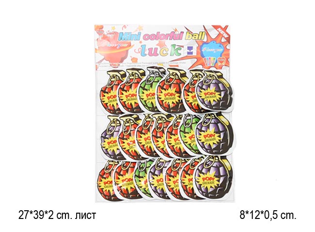 Бомбочки арт. 230 "Гранаты цветные" лимонки большие 20 шт. на листе=+
