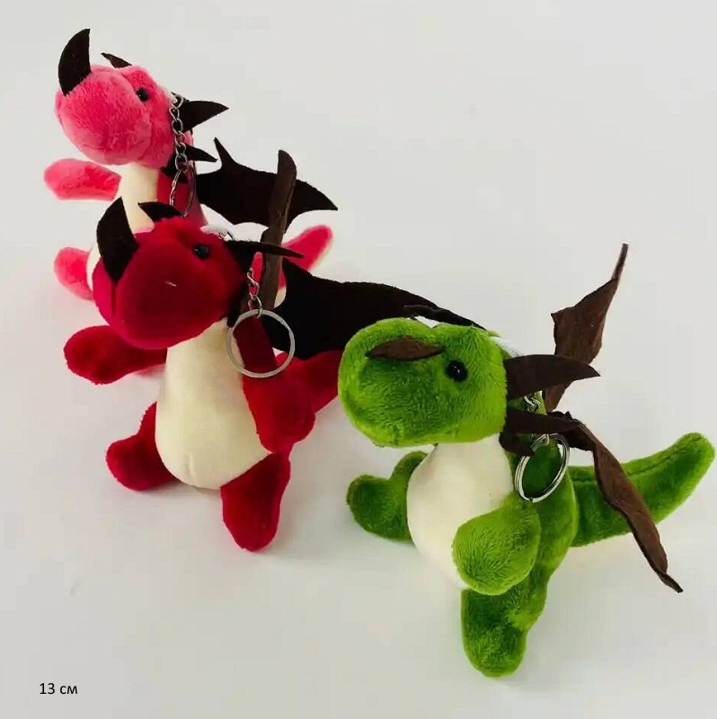 Брелок мягкая игрушка в виде актуального дракона на металлическом кольце