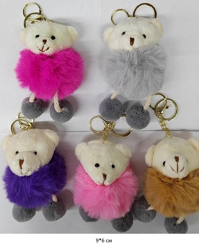 им Медведь арт. 805231 Белый в шубке цвета микс брелок в пак.