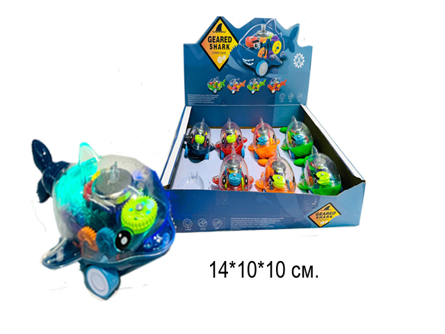 Морские арт. SR878-15 Акула, дельфин 2 вида шестеренки на бат. свет, звук (8 шт.) в кор.•