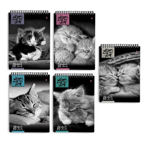 кс_Блокнот арт. 111287 А5, 40 л. гребень, ламинирован. картон, клетка Альт "Кошки" (5видов)3-40-462