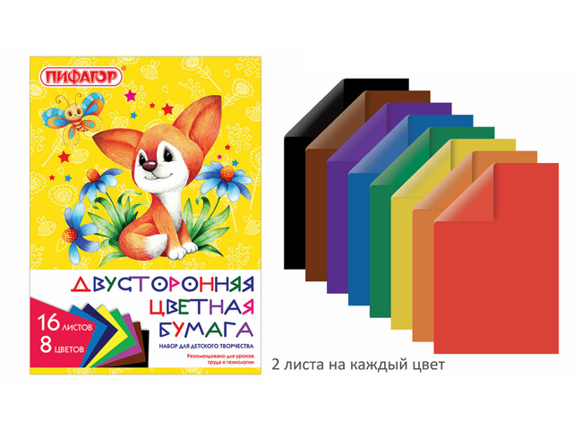 кс_Цветная бумага арт. 111331 А4 2-сторон. газетн. 16 л. 8 цв. на скобе ПИФАГОР 200х280мм "Лисенок"