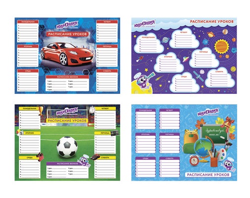 кс_Расписание уроков и звонков арт. 129782 А4, ЮНЛАНДИЯ, для мальчиков, ассорти (4 вида)