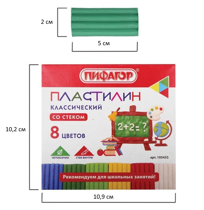 кс_Пластилин классический арт. 105433 ПИФАГОР ШКОЛЬНЫЙ 8 цветов 120 г, со стеком