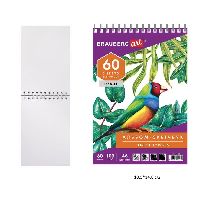 кс_Скетчбук арт. 110997 бел. бумага 100 г/м2,105х148мм,60 л.гребень,жёстк.подлож. BRAUBERG ART DEBUT