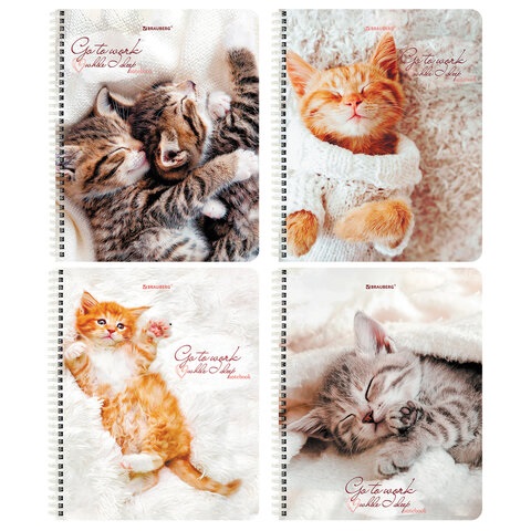 кс_Тетрадь арт. 404425 А5, 96 л., BRAUBERG, гребень, клетка обложка картон "Котики" (микс в спайке)