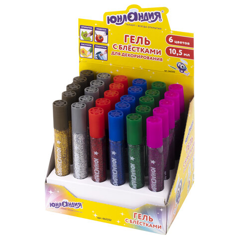 Гель с блёстками - это блестящие наборы для творчества и украшения открыток, поделок, рисунков и подарков. Удобный наконечник с дозатором позволяет легко наносить гель на любую поверхность.