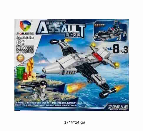 Конструктор арт. 41028-2 Военный самолет 74 дет. в кор.~