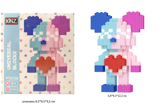 Конструктор арт. PT6138-802 Микро Медведь с сердцем 593 дет. в кор.
