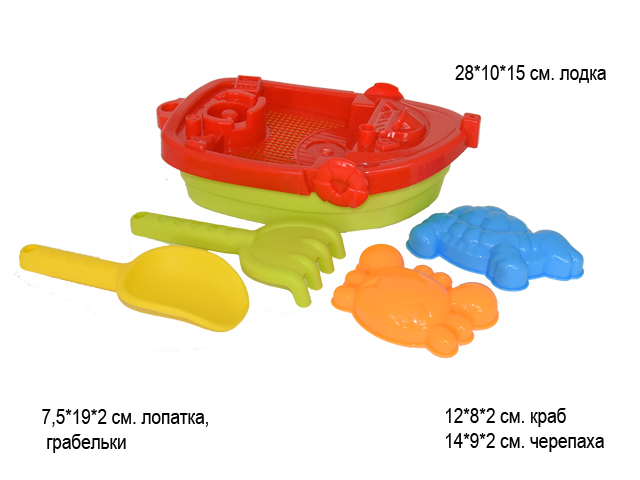 Песочный набор арт. 945 Кораблик, формочки, грабли, лопатка в сет._/72шт./
