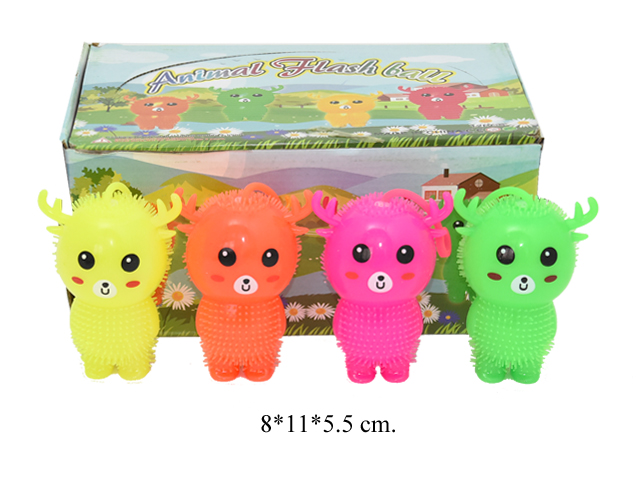 Мяч силиконовый в форме Оленя, внутри которого находится светящийся элемент. Игрушку можно сжимать и кидать, не опасаясь за её сохранность. Издает пищящий звук