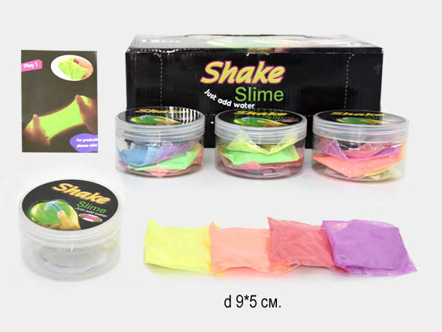 В набор входит баночка, в которой 4 разноцветных порошка для приготовления лизуна, инструкция.