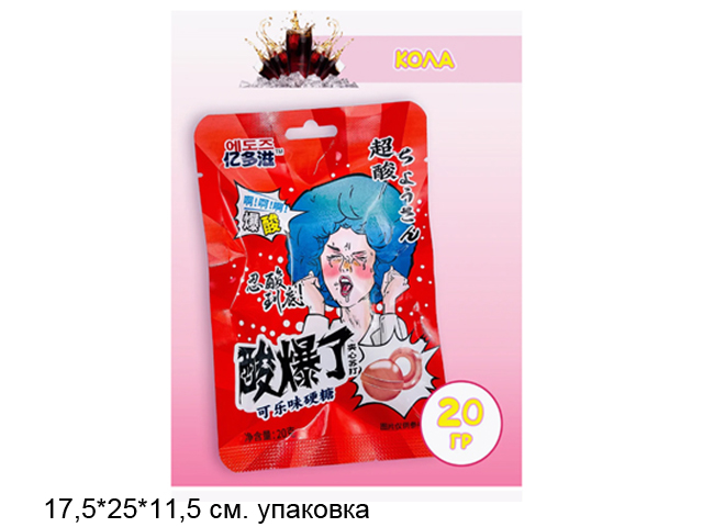 Конфета арт. 640206-4 Суперкислая "Кола" 20 г 20 шт. в красной кор./*