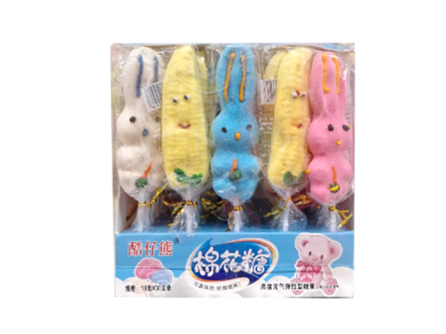 Маршмеллоу арт. 910008-4 На палочке "Зайка/кукуруза" 18 г 30 шт. в открытой голубой кор.'