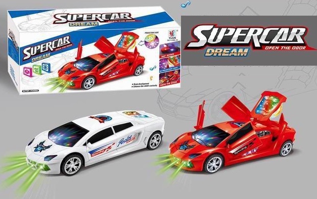 Игрушка катается по комнате в хаотичном направлении, при возникновении препятствий, автоматически поворачивает в другую сторону. Гонка проигрывает веселую музыку, светится разноцветными огоньками, открывает двери и багажник.