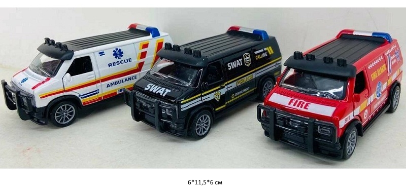 Модель металл. арт. ZY305514 Скорая, Спецназ, Пожарная (12 шт.) шоубокс~