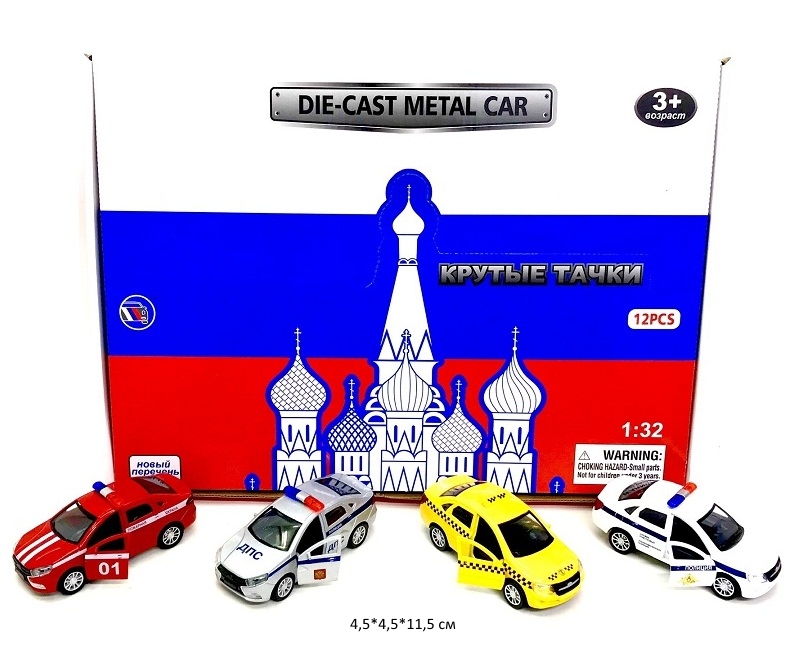 Модель металл. арт. TCC185P-186P-12D ВАЗ Пожарная, ДПС, Такси, Полиция (12 шт.) шоубокс_