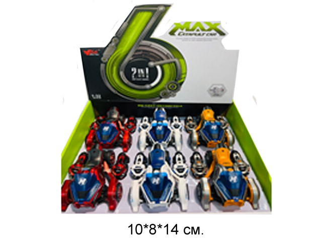 Инерционный гоночный автомобиль с пусковым устройством. Главной особенностью являются мотоциклы, которые крепятся к корпусу машинки. Ими можно выстреливать вперед, нажимая соответствующие механические кнопки.